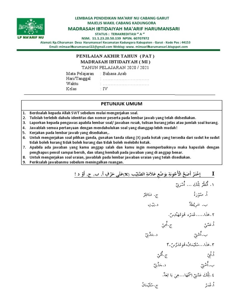Soal uts b arab kelas 4 sdit mi semester 2 genap 2017 from 123dok.com. Kumpulan soal dan jawaban bahasa arab kelas 4 mi sesuai dengan kma 183 terbaru materi . Baca lebih lanjut ( 2 halaman). Bahasa arab kelas 4 bab 4, madrasah ibtidaiyah. Sep 04 2020 contoh soal bahasa indonesia kelas 11 semester 1 dan .